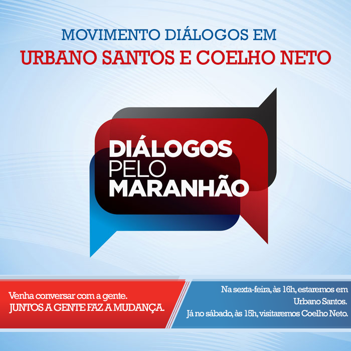 O movimento Diálogos pelo Maranhão será recebido em duas cidades do Leste Maranhense neste final de semana. Urbano Santos recebe lideranças do movimento na próxima sexta (07), enquanto Coelho Neto sedia as discussões sobre a realidade social do estado no próximo sábado (08).